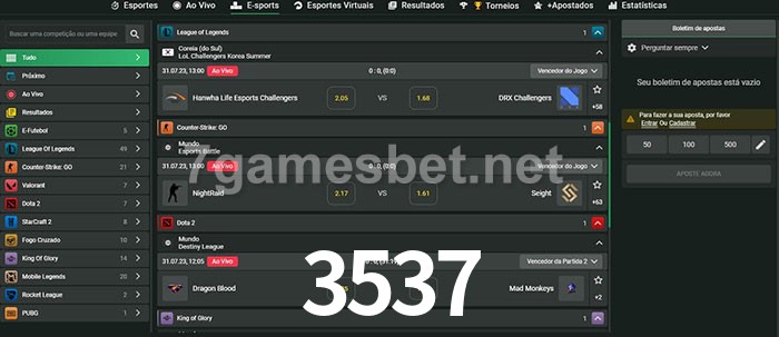 O 3537 oferece uma grande seleção de opções de apostas em e-sports com probabilidades competitivas